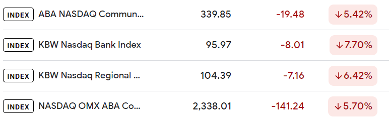 Bank stocks tumble to worst levels in ~3 years
