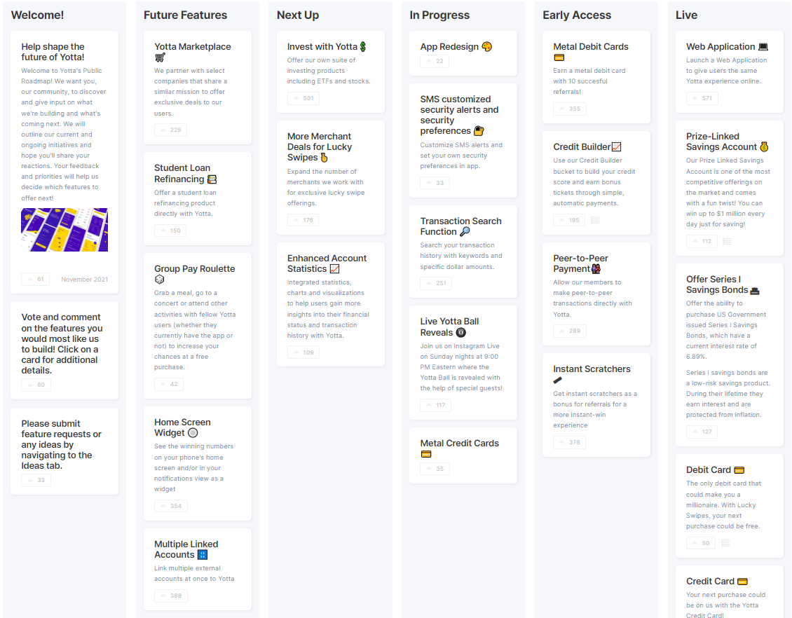 And it's not just the savings account… Yotta is changing the game in many different categories. Debit cards, credit cards, marketplace, student loan refinancing. The hits just keep coming! Check out their roadmap